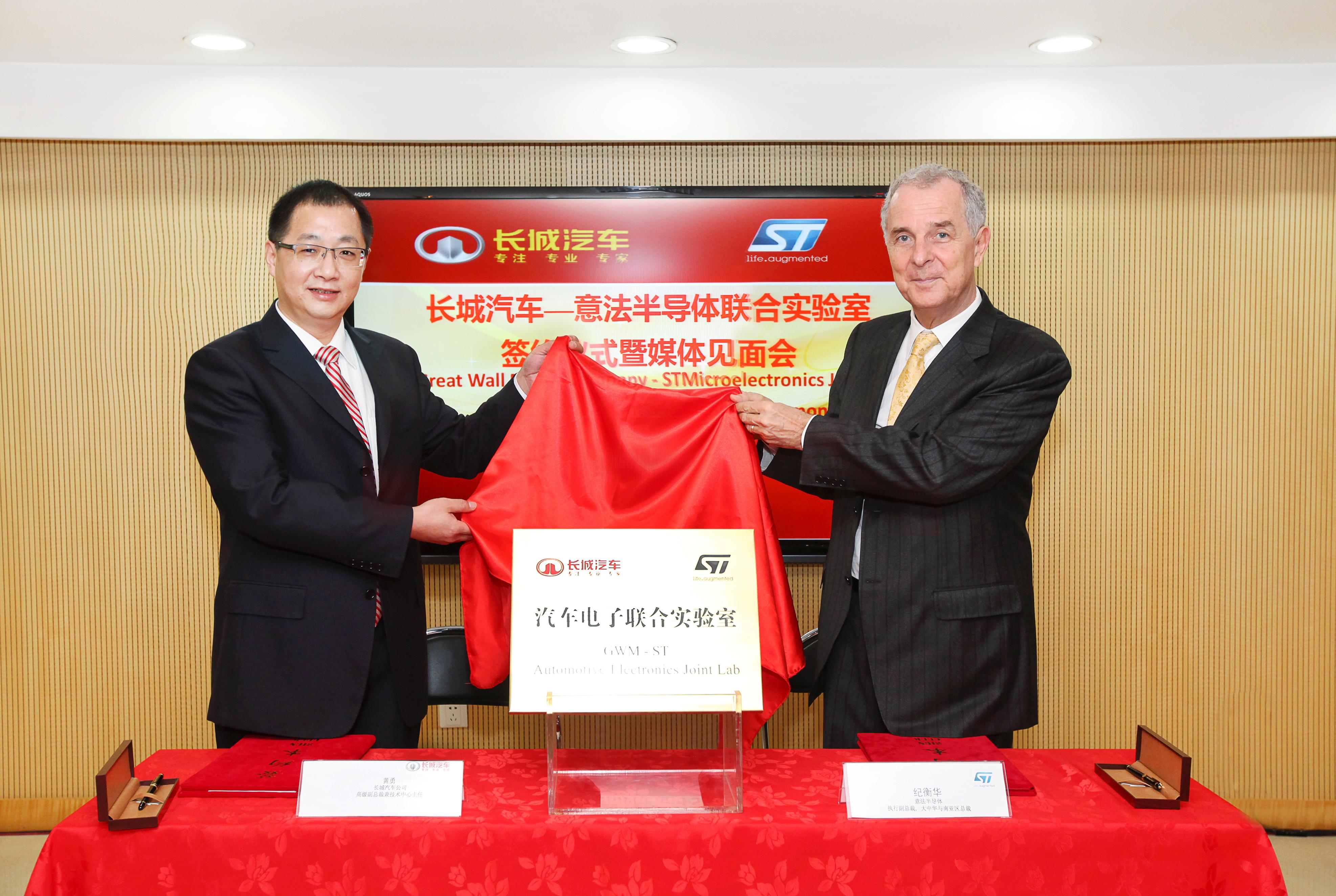 中国,2013年7月2日 —— 横跨多重电子应用领域、全球领先的半导体供应商意法半导体(STMicroelectronics,简称ST;纽约证券交易所代码:STM)与中国的领先SUV与皮卡制造商、私有企业长城汽车股份有限公司(GWM)今日宣布建立战略合作伙伴关系,并在GWM技术中心设立联合实验室。该联合实验室将专注动力总成、底盘、安全、车身、车载娱乐、新能源技术以及其它汽车应用前沿解决方案的研发。